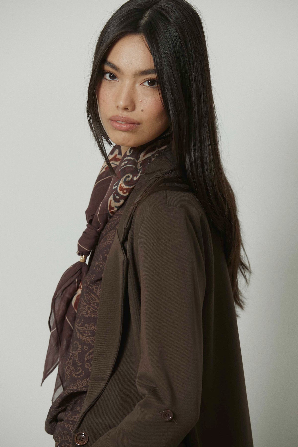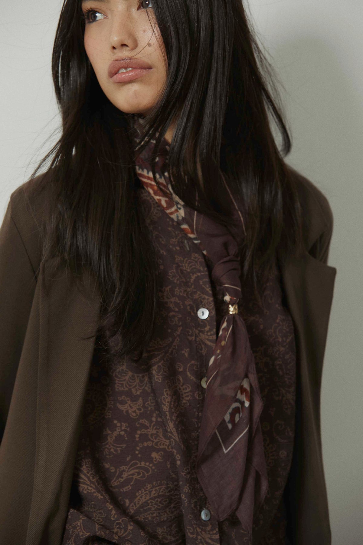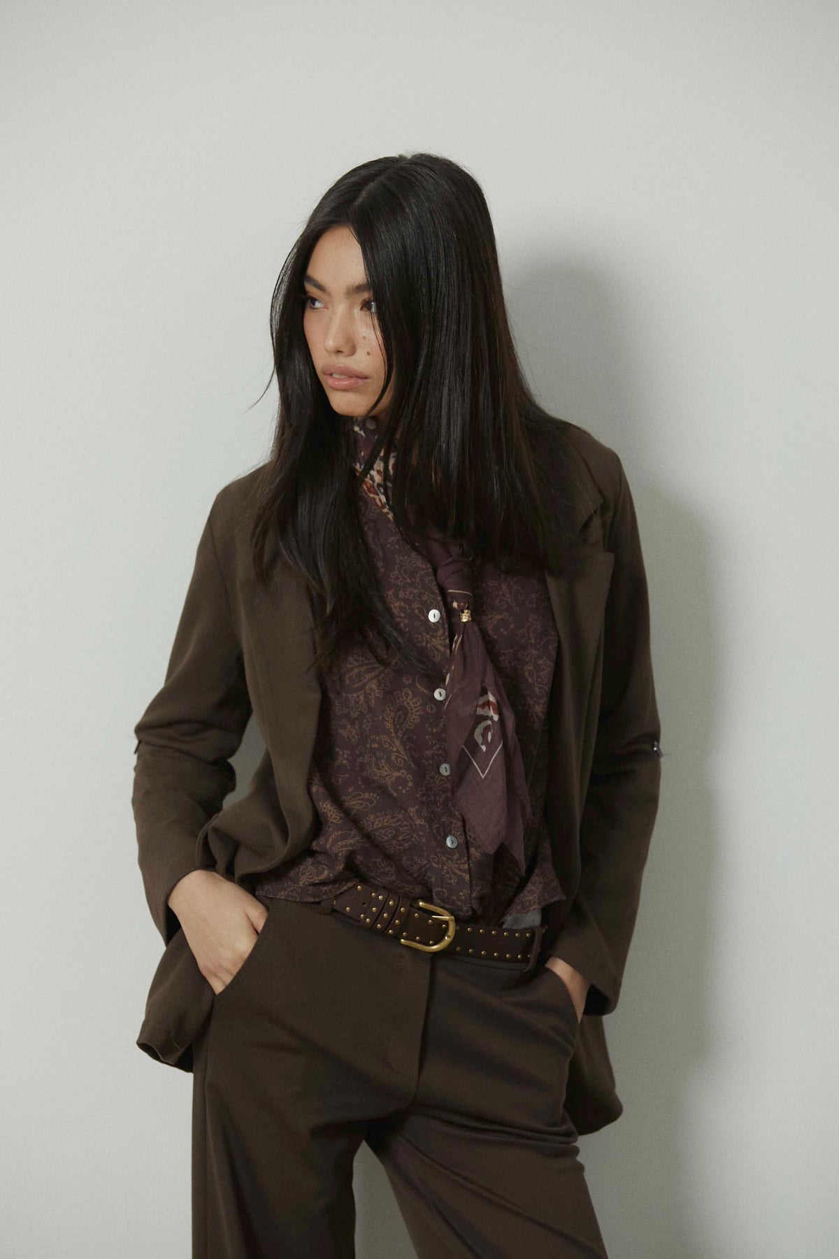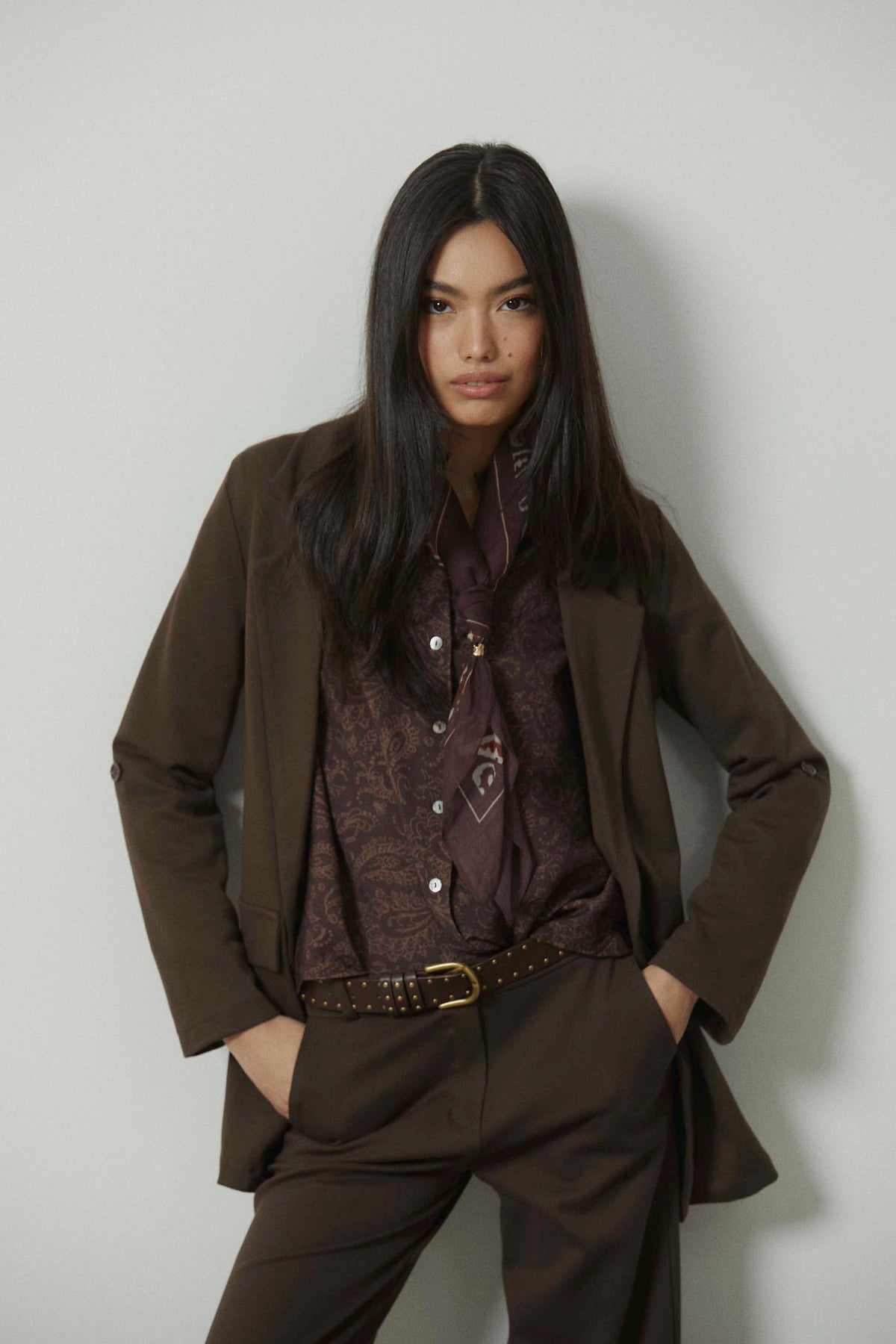 Americana sastre en color marrón con corte recto y silueta ligeramente entallada. Diseño de solapa clásica y manga larga que aporta estructura sin rigidez. Una prenda pensada para el entretiempo y el adelanto de primavera, fácil de integrar en looks de diario más cuidados.